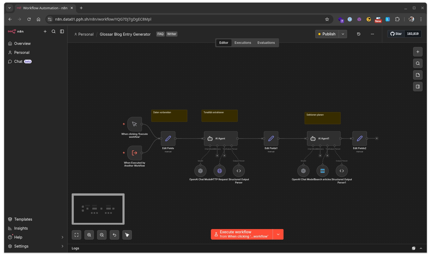 Absolut. Da du n8n selbst hostest, gibt es keine künstlichen Sperren. Du hinterlegst einfach deine eigenen API-Keys in den entsprechenden Nodes. Dein Server fungiert dabei als sicheres Mission Control Center für deine KI-Workflows. Das Netzwerk lässt alles durch.